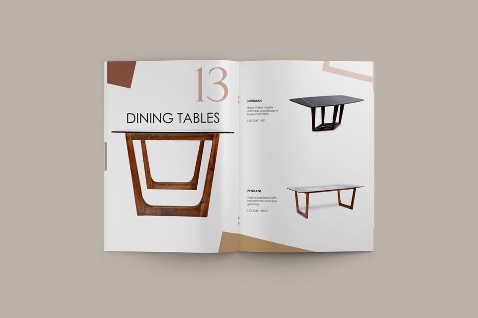 The color scheme aims to bring out the earthy tones and give an elegant, neutral yet impactful aesthetic to the pages while the forms aim to depict the guise of the furniture pieces.